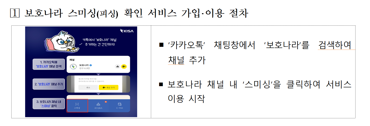 보호나라 스미싱(피싱) 확인 서비스 이용방법