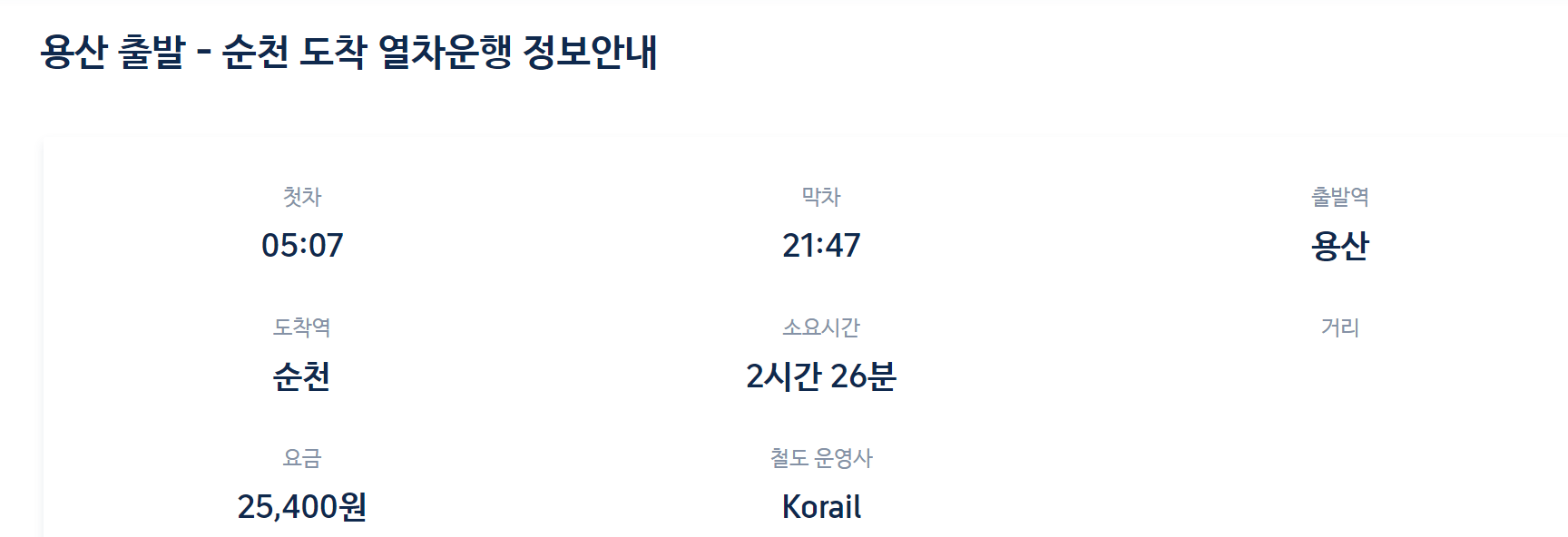 - 용산에서 운행하는 순천발 Korail행 직행 열차가 있습니다.