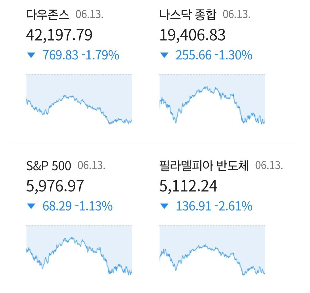 - 06/16 미 증시, 트럼프 발언에 낙폭 축소 후 이란의 대규모 공격 시작에 낙폭 확대