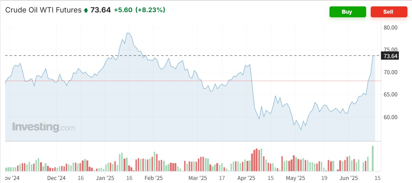 • 국제유가, 이스라엘-이란 확전에 7% 폭등…금값도 최고치 눈앞