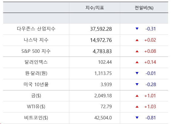 10. 미국 3대 증시는 엇갈린 상승세로 마감했다 다우지수는 이번 주 누적 상승률 0.34%로 0.31% 하락했고 나스닥은 이번 주 누적 상승률 3.09%로 0.02% 상승했으며 S&P 500 지수는 상승했다. 0.08%, 이번 주 누적 상승률은 1.84.%로 Microsoft는 거의 1% 상승하여 마감 시가총액에서 Apple을 앞질렀습니다.