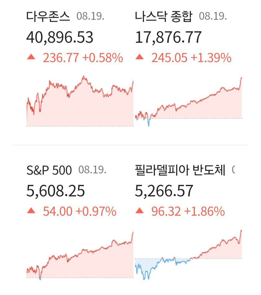- 08/20 미 증시, 잭슨홀 컨퍼런스 앞두고 엔비디아 강세 등 종목 장세 진행되며 상승