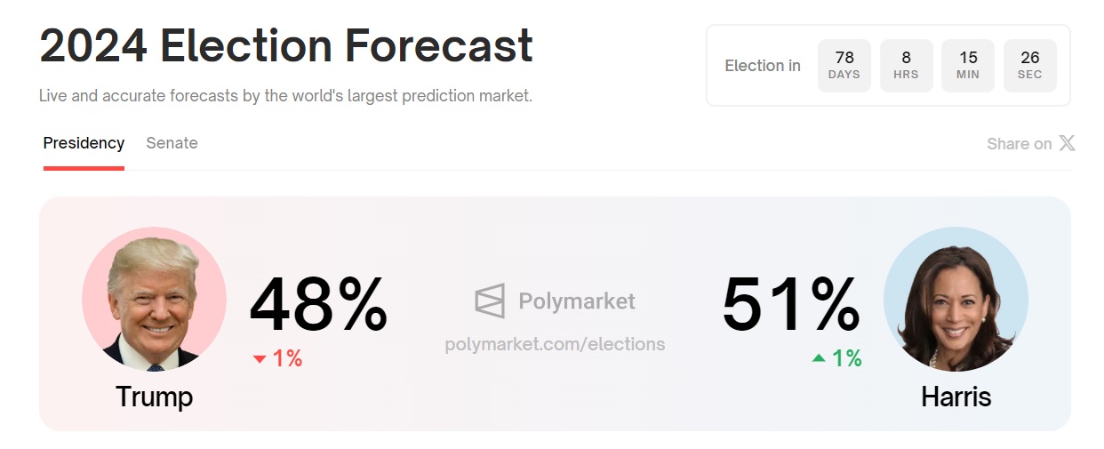 - 폴리마켓, 해리스 51%로 트럼프 다시 앞서…