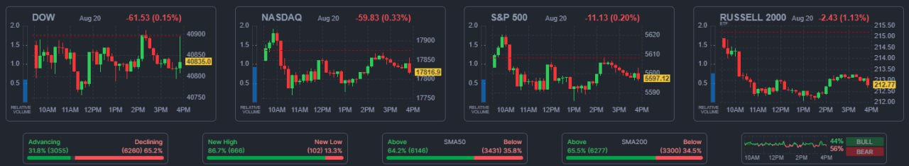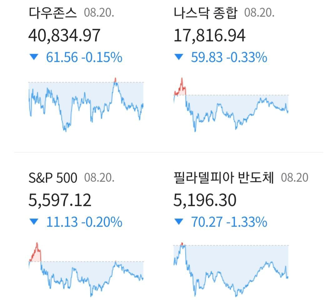 - 08/21 미 증시, 정치, 경기 등 주요 이슈에 주목하며 소폭 하락 마감