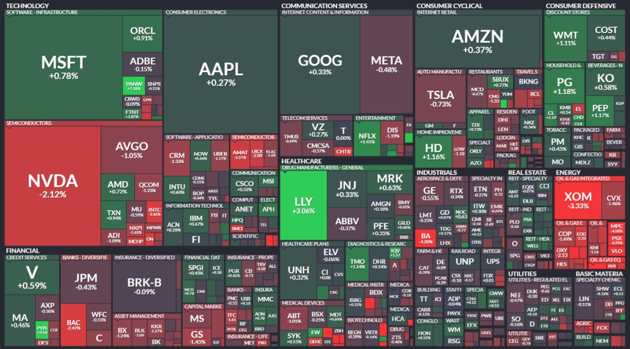 - 일라이릴리(+3.05%)는 비만 치료제인 Zepbound가 2형 당뇨병 위험을 현저히 감소시켰다고 발표하자 상승.