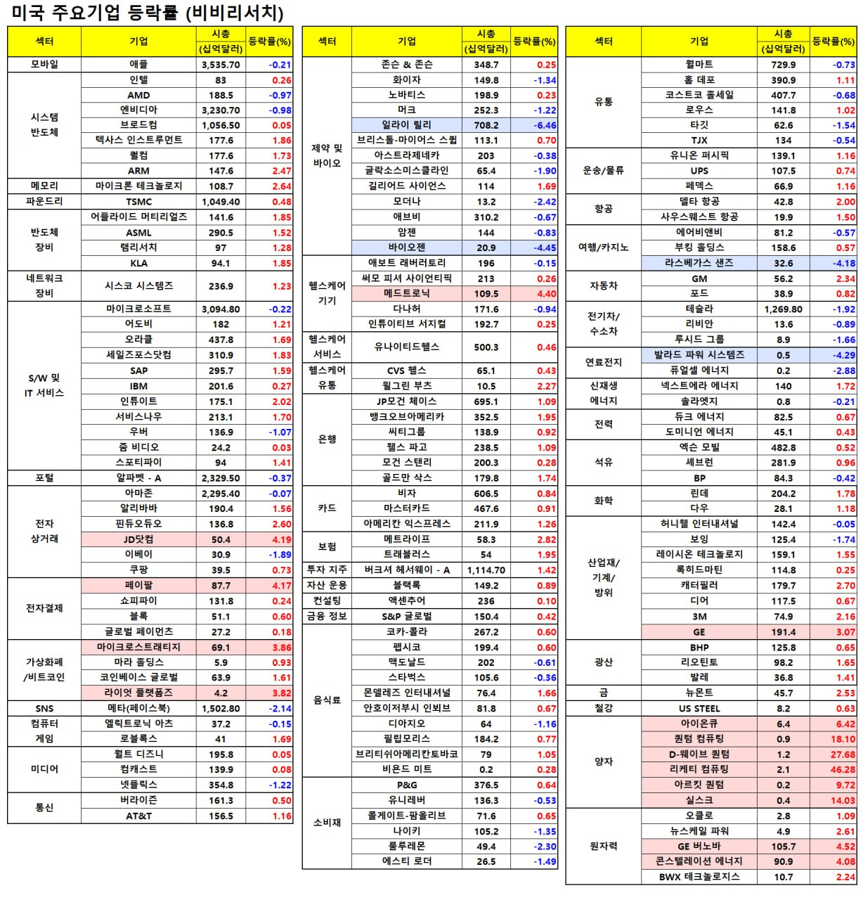 - 마이크론(+2.42%)은 UBS가 HBM 부문에서의 리더십과 공급-수요 관련 기대를 반영하며 매수 의견을 발표하자 강세.