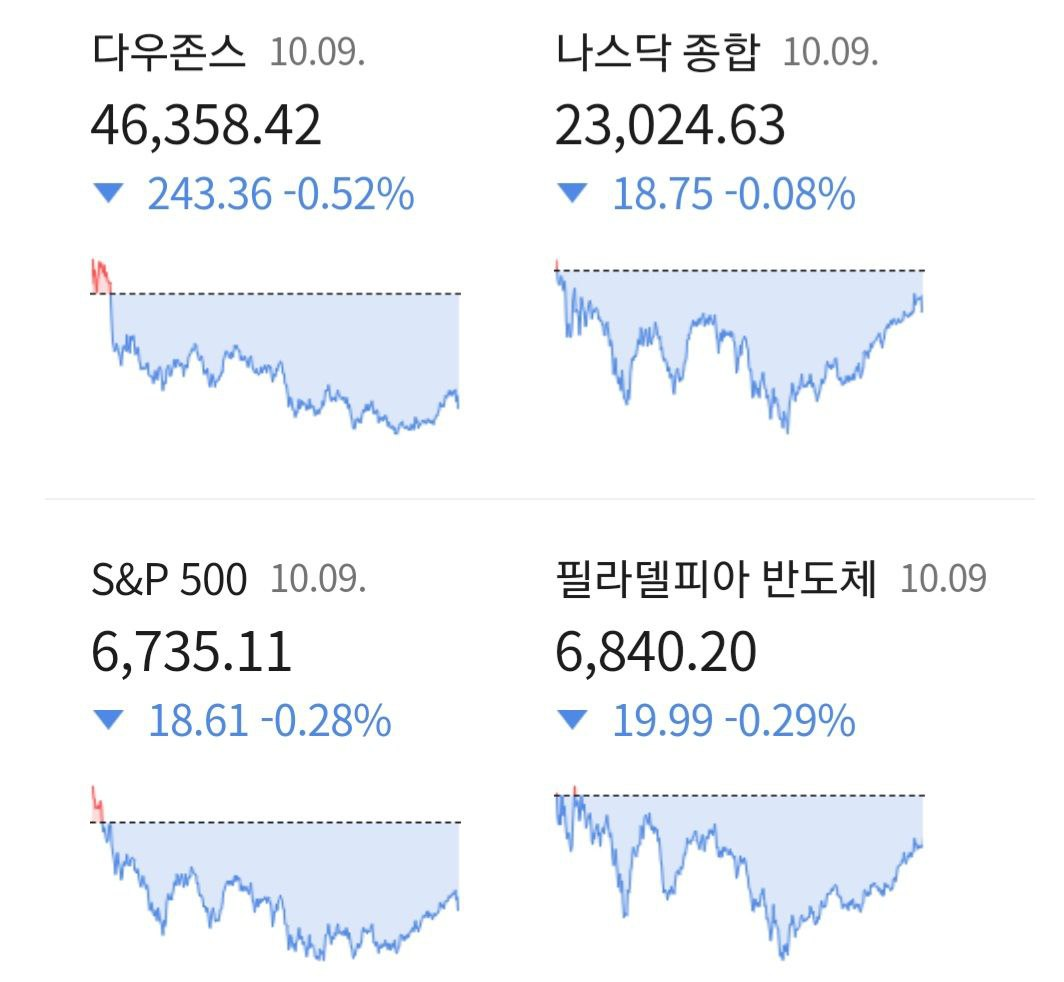10월 10일 시황. 셧다운, 일부 증시 과열론에 매물
