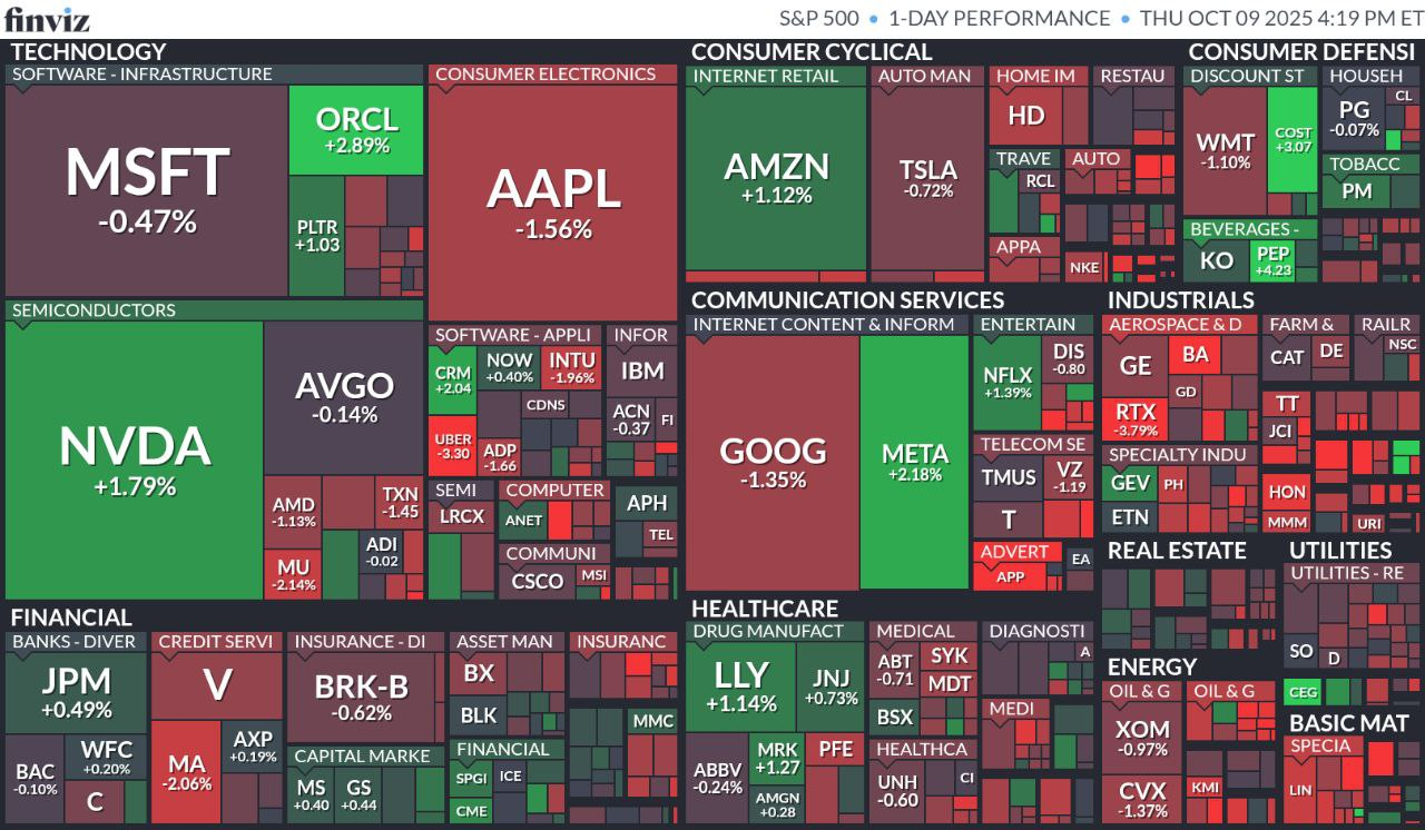 - 기술주에서는 엔비디아가 애널리스트들의 목표가 상향과 함께 UAE 반도체 거래 승인 소식이 전해지며 1.73% 상승했습니다