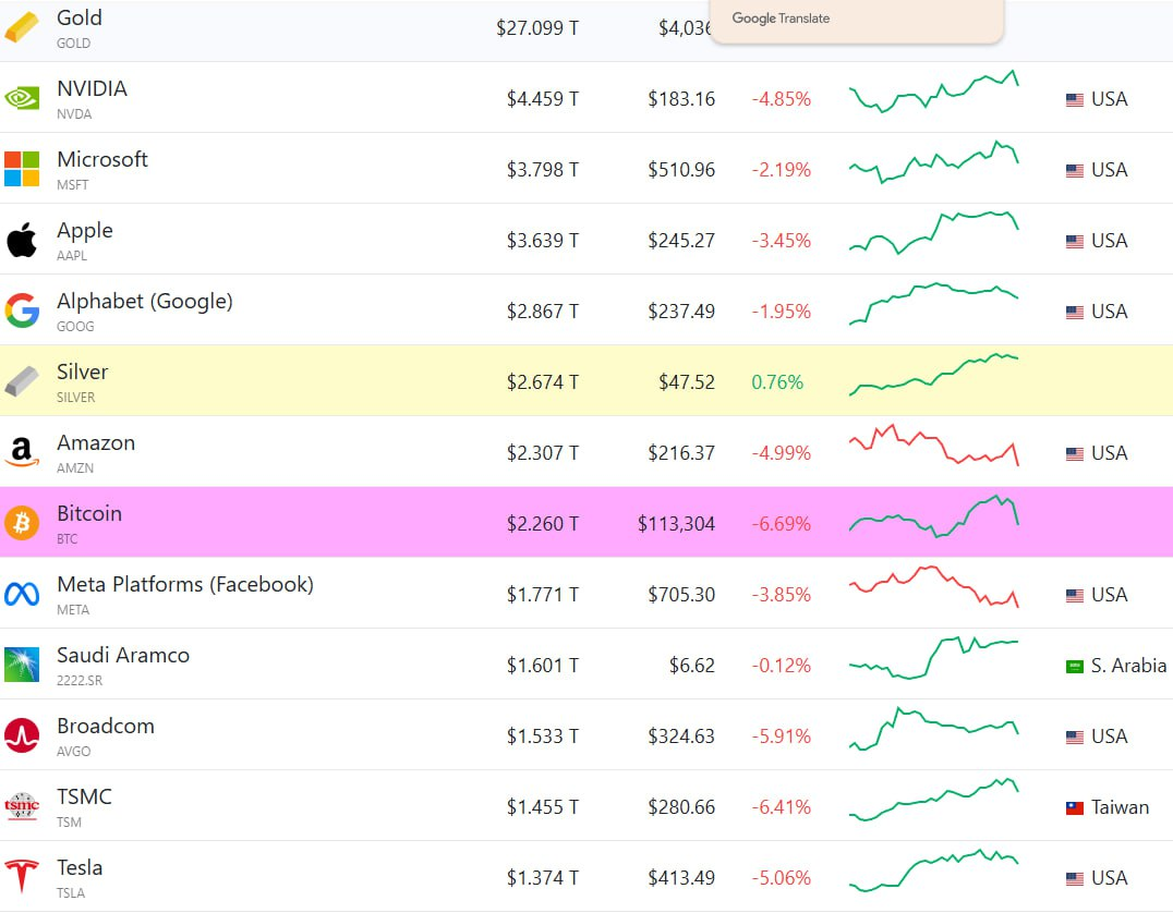 11, COMEX 금 선물은 1.95% 하락한 온스당 $3991.1에, COMEX 은 선물은 2.73% 하락한 온스당 $47.655에 마감했습니다.
