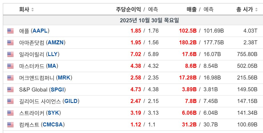 - 장마감 후 실적 발표한 애플 $AAPL, 아마존 $AMZN 시간외 거래에서 각각 +0.7%, +9.5%