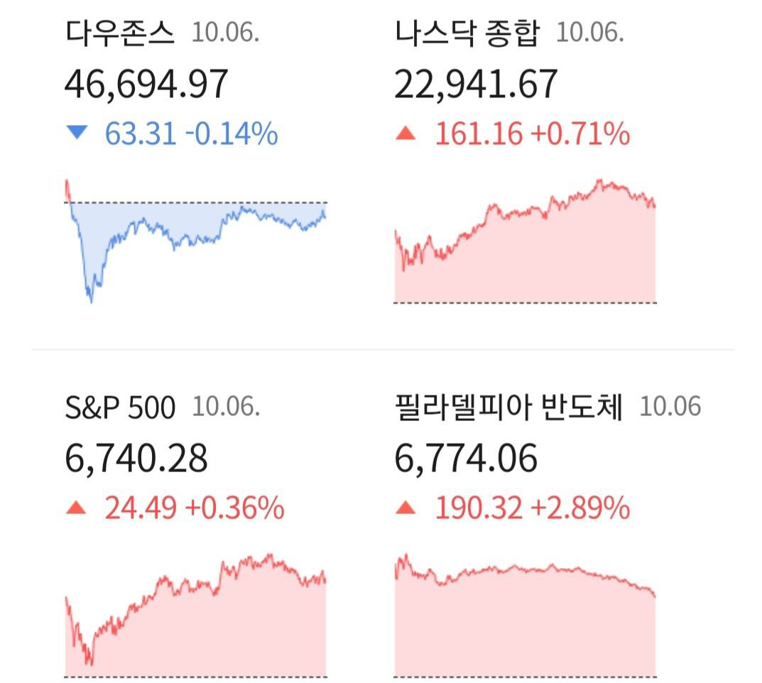 10월 7일 시황. AI 슈퍼사이클 기대에 나스닥 상승