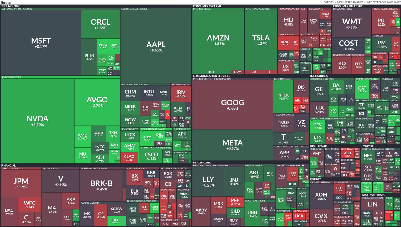 - AMD(+11.37%)는 최근 OpenAI와의 파트너십으로 향후 성장이 가속화될 수 있다며 투자의견 상향 조정에 상승.