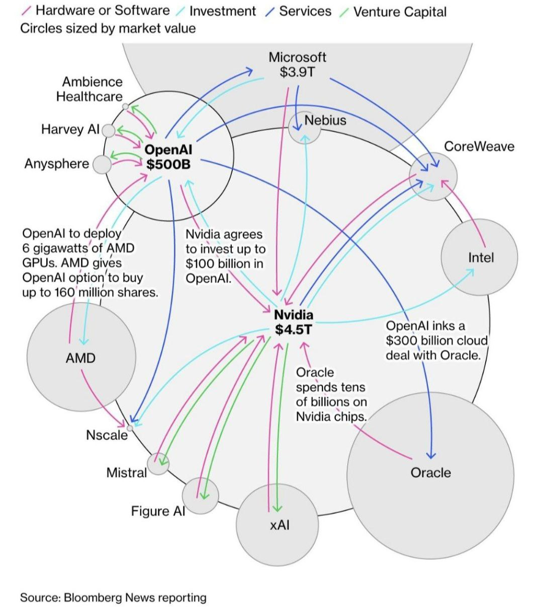 - 시장에서는 엔비디아가 OpenAI에 자금을 지원하고 OpenAI는 엔비디아 칩을 구매하는 것과 같은 순환투자에 대해 어딘가에 문제가 생기면 상황이 심각해질 수 있다는 우려가 있습니다/