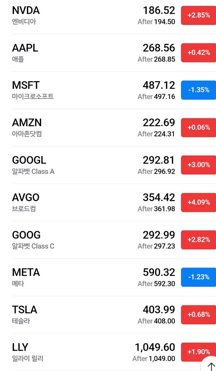*특징 종목: 엔비디아, 장 마감 후 상승 중