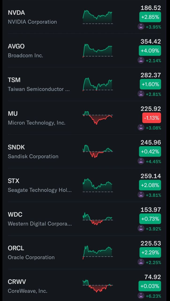 엔비디아 실발 후 메모리, TSMC, 네오클라우드 등 시간외 3~6%대 급등 중