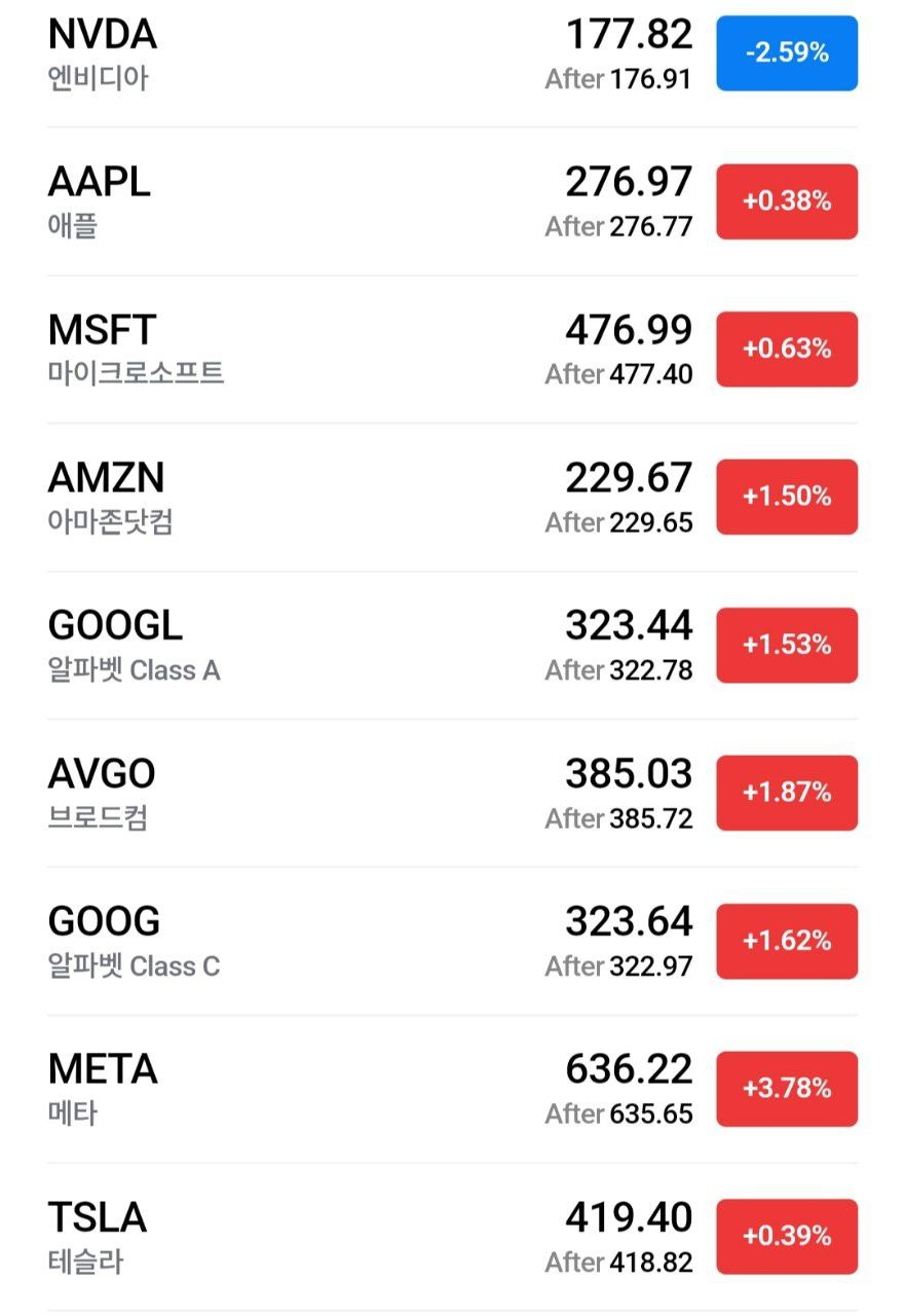 - 반면 알파벳은 1%대, 메타는 3.78% 상승, 브로드컴도 2% 가까이 올랐습니다.