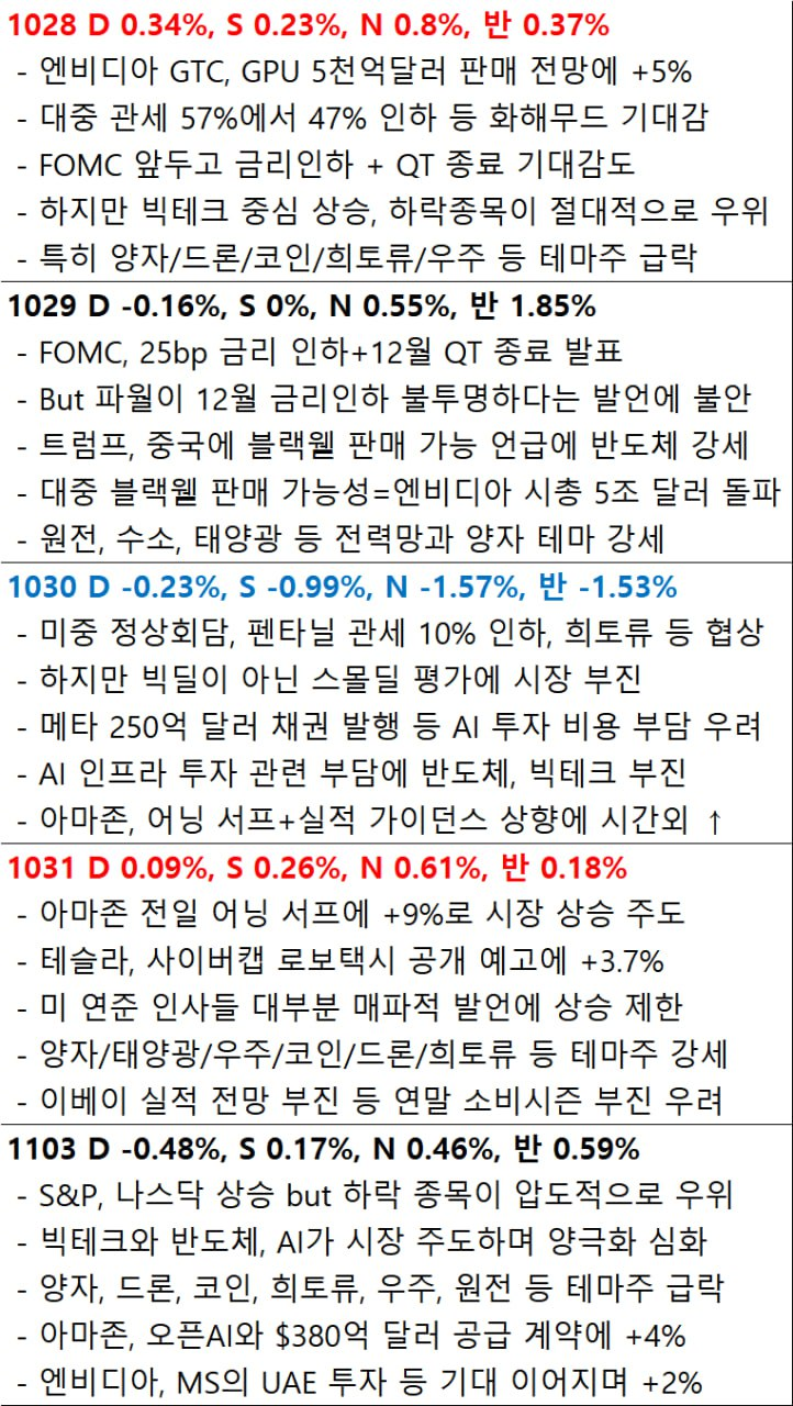 11월 4일 시황. 반도체 강세 VS 연준 신중론+셧다운