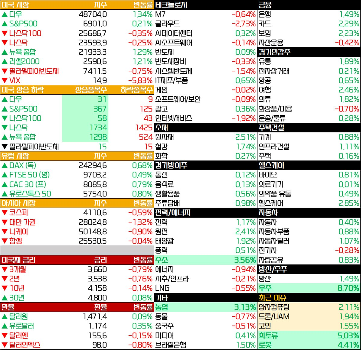 - AI 및 메가캡 테크는 뉴스 플로우가 집중.