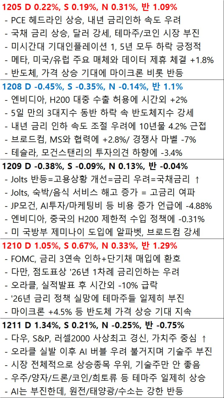 12월 12일 시황. AI주 팔아 가치주로 넘어간 미 증시