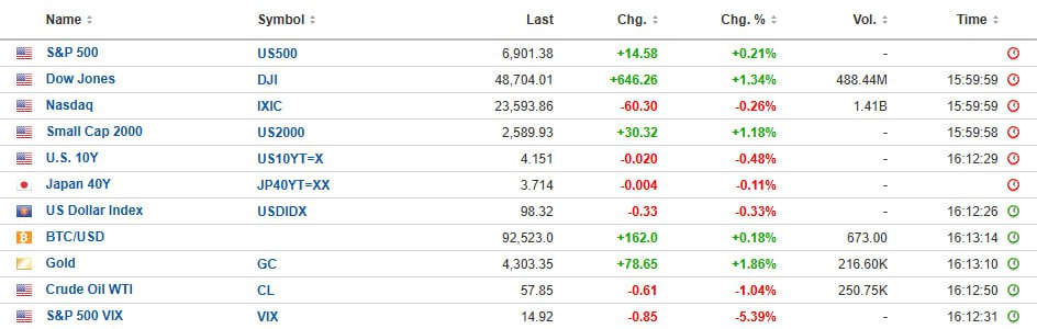 - 오라클 $ORCL 실적과 연준의 금리 인하가 충돌하며 3대 지수 + 러셀 2000 혼조. 다우, 러셀 2000 1% 이상 상승하며 사상 최고치 경신. 반면 나스닥만 하락