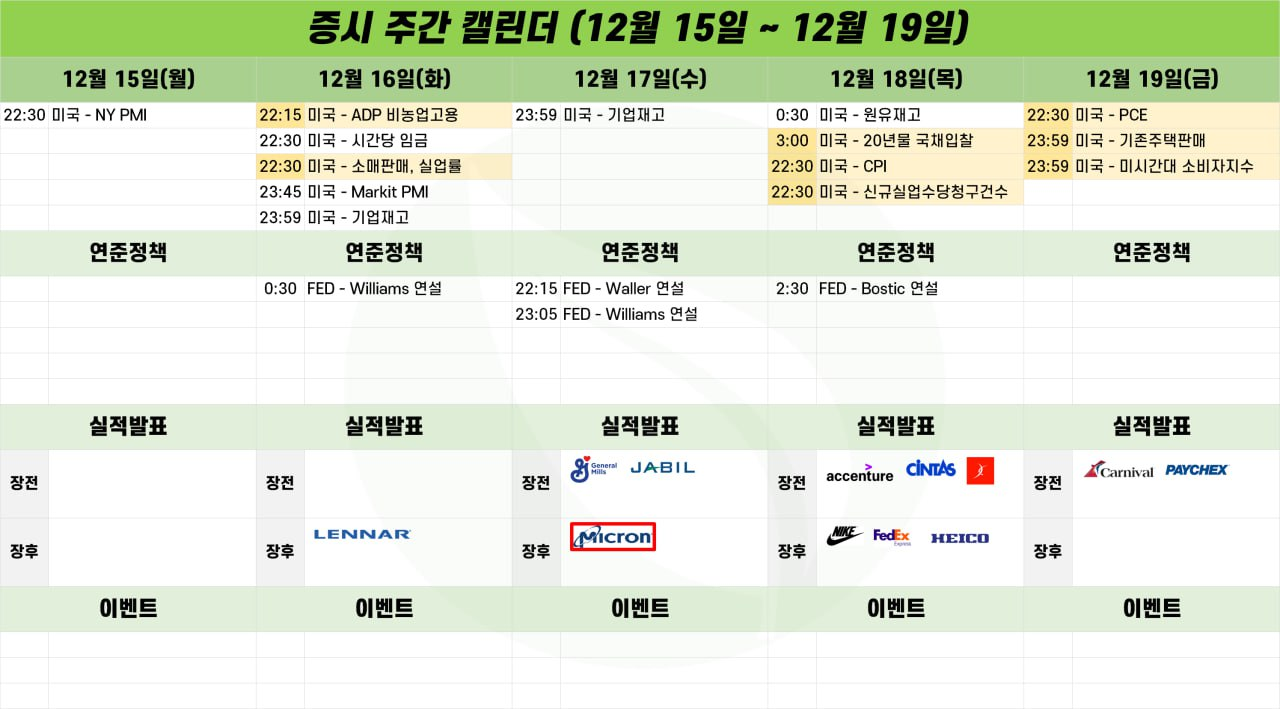 - 16일(화) 있는 11월 고용보고서가 발표되는데 파월 의장의 우려가 실제 데이터로 확인되는지가 핵심.