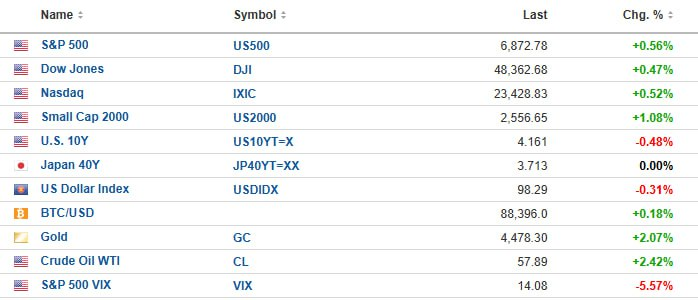 • 코어 마이닝(+3.51%), 헤클라 마이닝(+4.47%) 등 금광 관련 기업들도 상승.