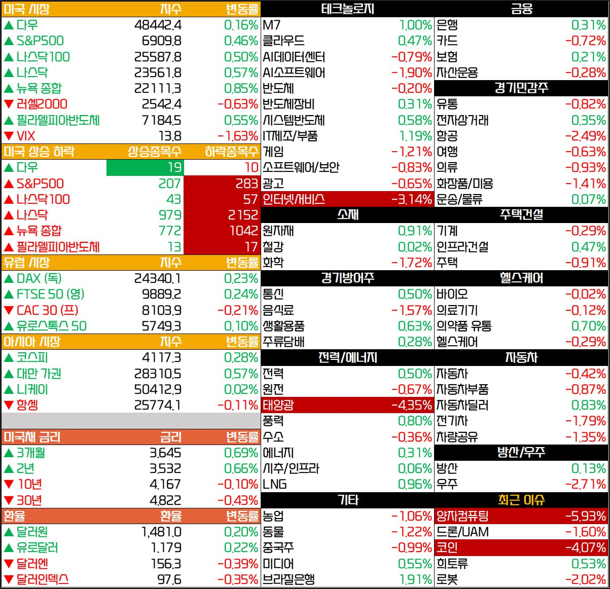 - 반면, 마이크론(-0.12%)은 관세 유예에도 불구하고 중국 기업과의 경쟁 심화 우려로 부진.