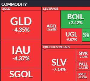 - 이런 가운데 오늘 금과 은, 플래티넘, 구리 등이 큰 폭으로 하락.