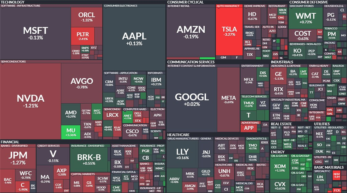 - 그 외에도 HP(-2.28%), 슈퍼마이크로 컴퓨터(-1.83%), 마벨 테크(-0.67%), 코어위브(-1.96%), 네비우스(-1.63%) 등도 하락.
