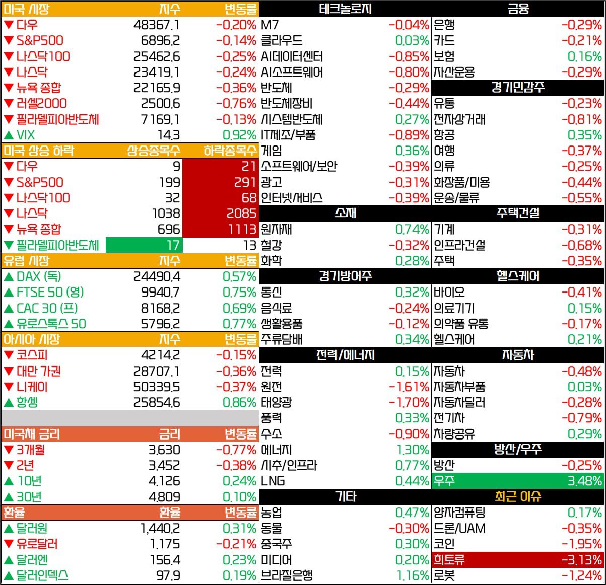 - AIRO그룹(-1.81%), 에어로바이런먼트(-2.07%), 조비항공(-2.36%), 아처항공(-1.95%) 등 드론, 비행택시 관련주도 하락.