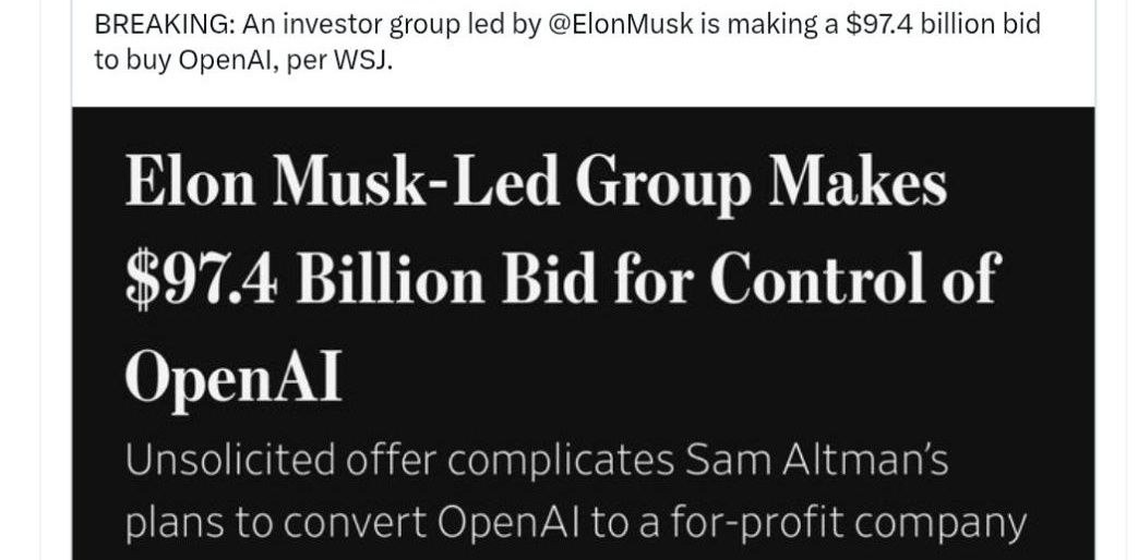 - ⚡️일런 머스크와 투자자들이 Open AI 지배권을 확보하기 위해 974억 달러를 제안했다는 소식도 관심을 끌었습니다/