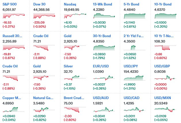 - S&P500 ▼ 6,051.97 (-0.3%)