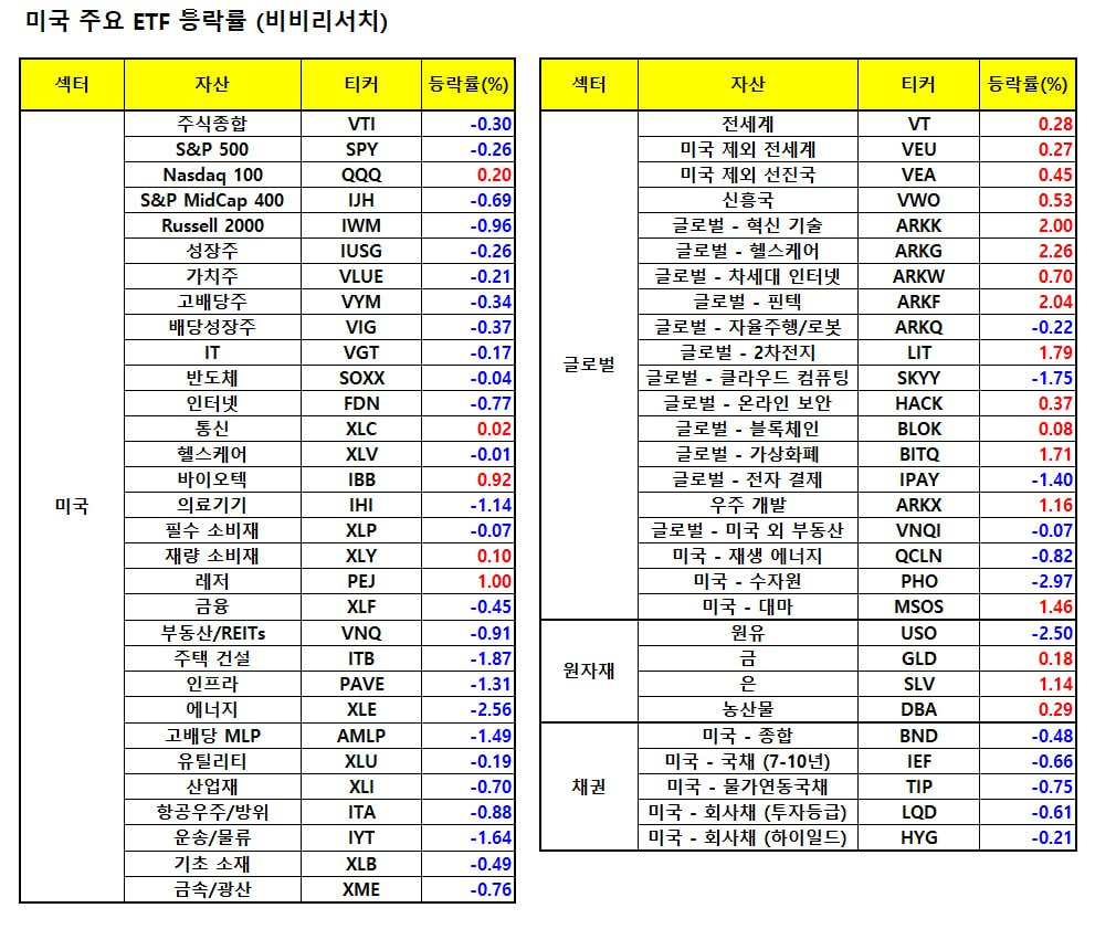 - 반면, 유나이티드헬스(-1.22%) 등은 금리 급등 여파로 부진.