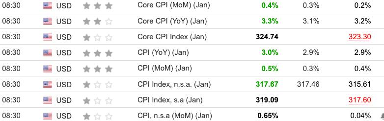 - 1월 CPI 전년 3.0%, 전월 0.5%로 예상 2.9%, 0.3% 상회