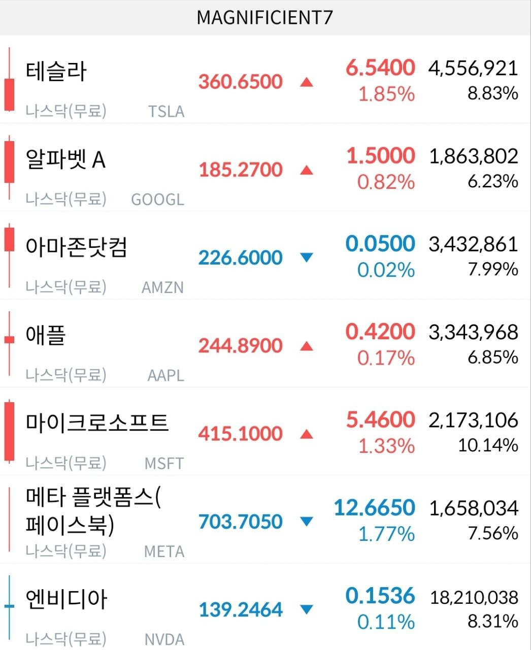 - 특히 M7 종목 중 테슬라(+1.82%)와 엔비디아(-0.12%)의 수급에 큰 영향을 주기에 관련 종목 변동성 확대는 지속.