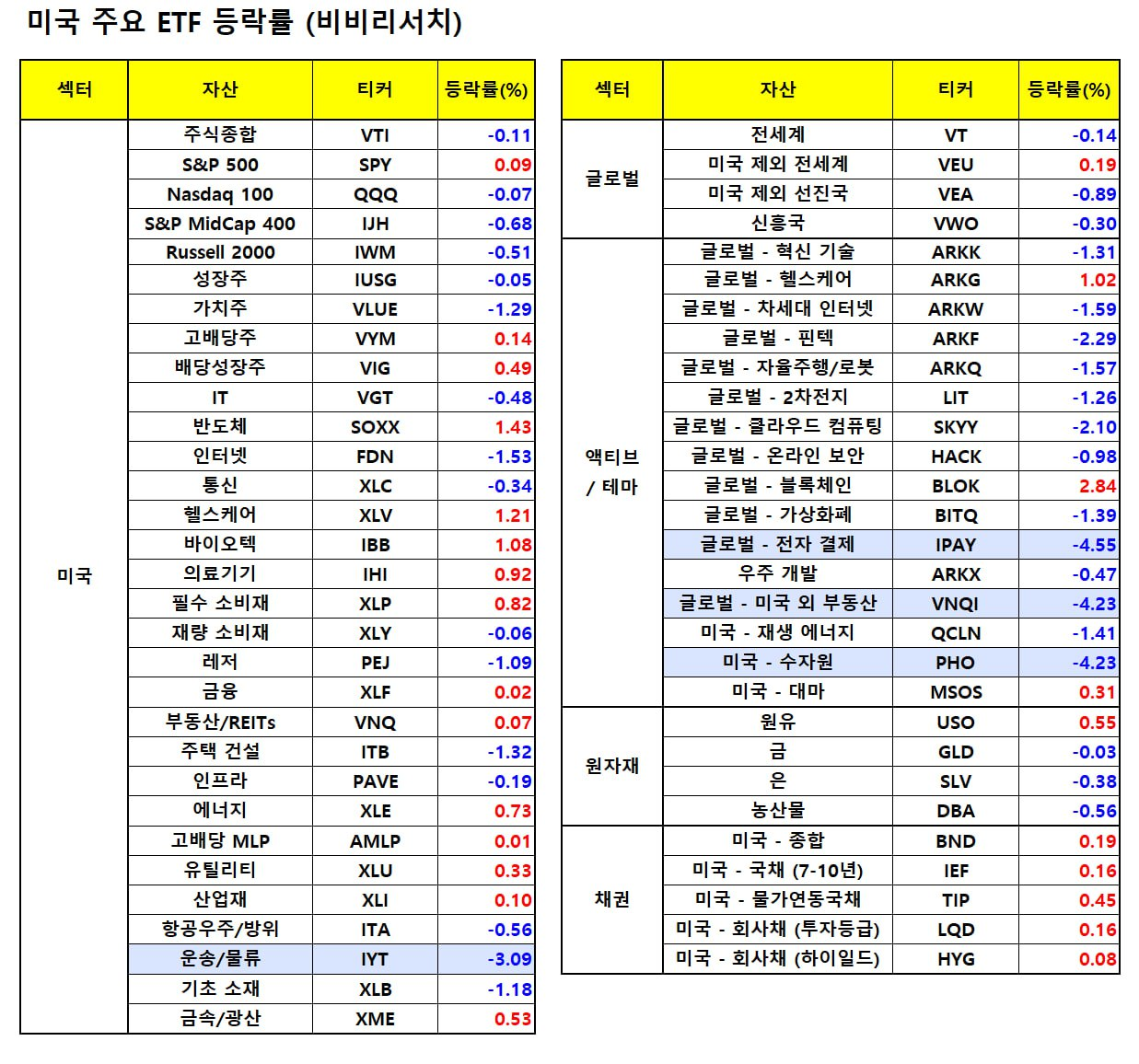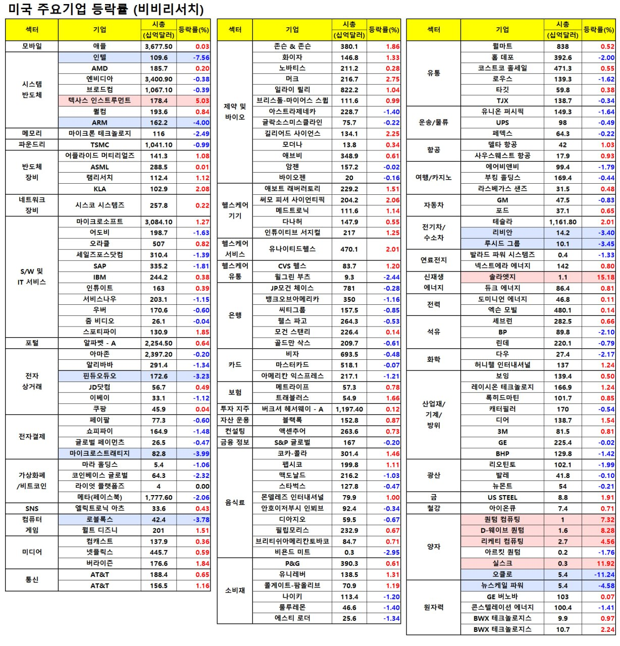 - 데이트 앱 운영사인 범블(-30.31%)은 유료 사용자 감소로 부진한 전망 발표하자 하락.