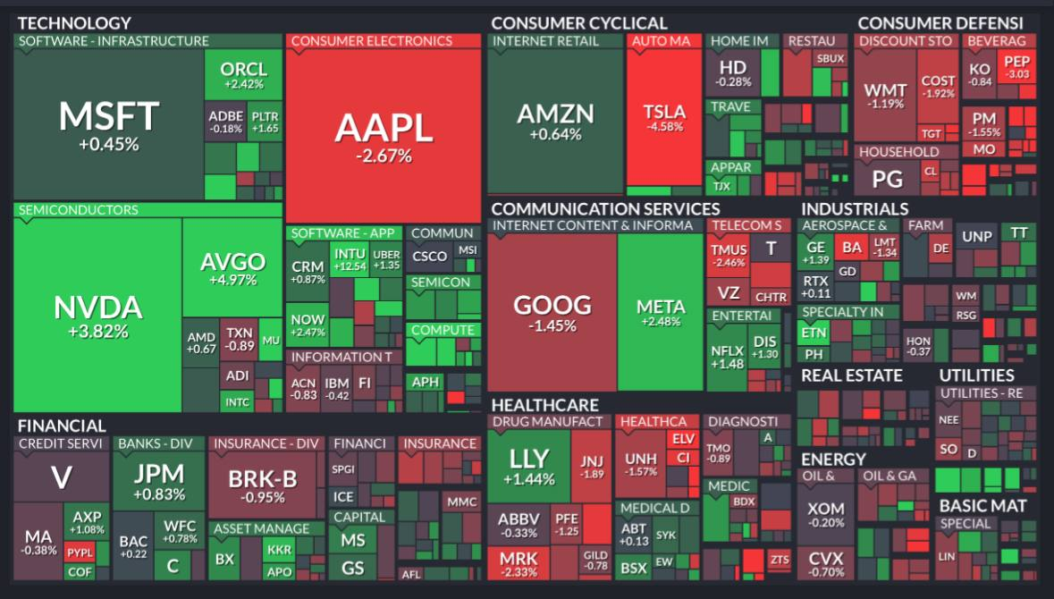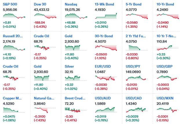 - DOW ▼ 43,433.12 (-0.4%)