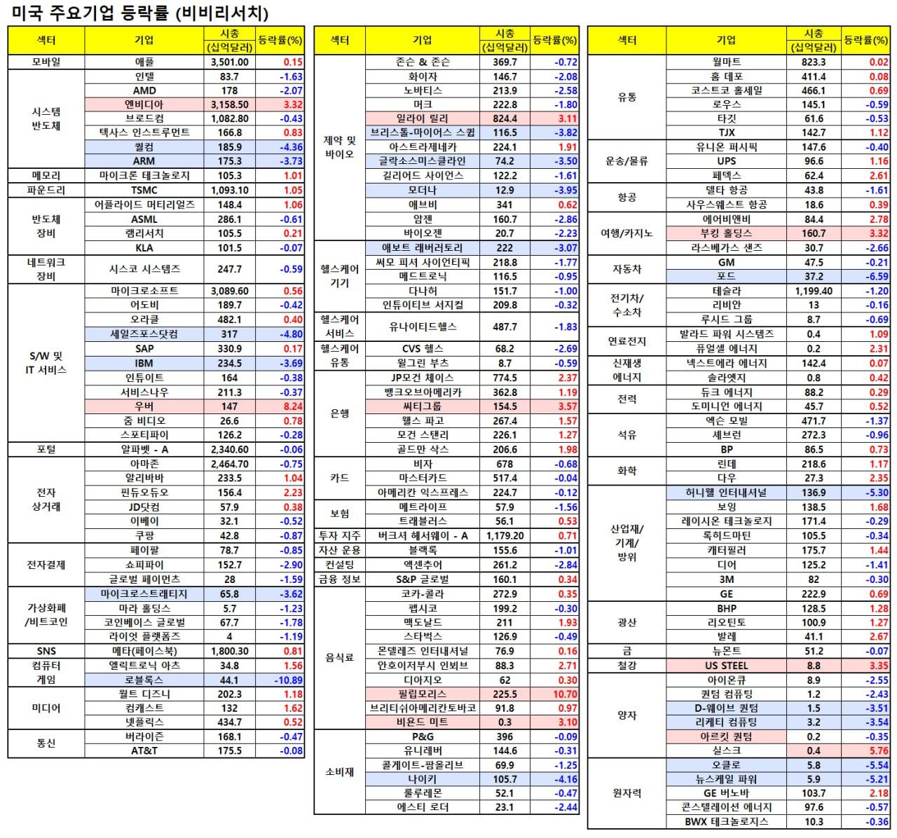- 브리스톨 마이어스(-3.84%)는 긴존 의약품 판매 감소로 올해 매출이 시장 예상을 하회할 것이라는 소식에 하락.