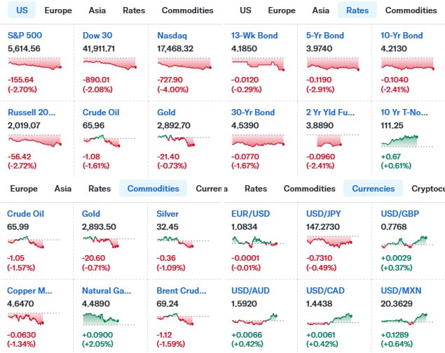 - S&P500 ▼ 5,614.56 (-2.7%)