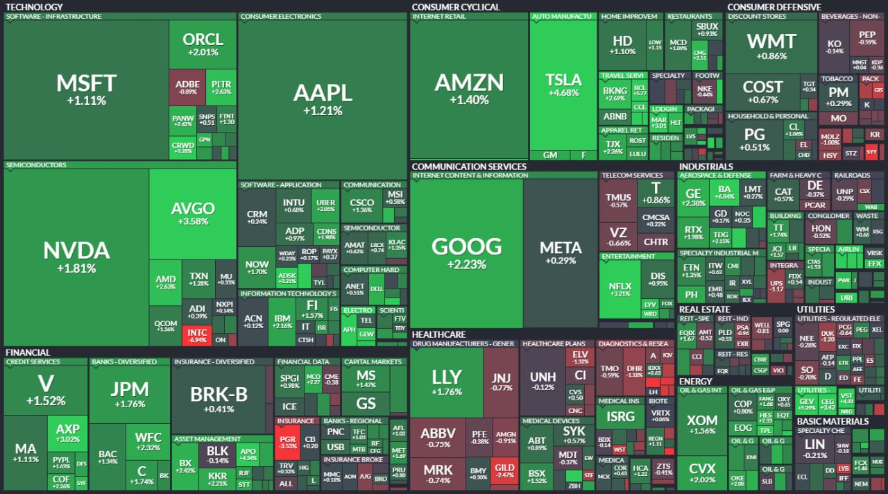 - 시총 15위까지 모두 상승. 테슬라 4.7%, 엔비디아 1.8%
