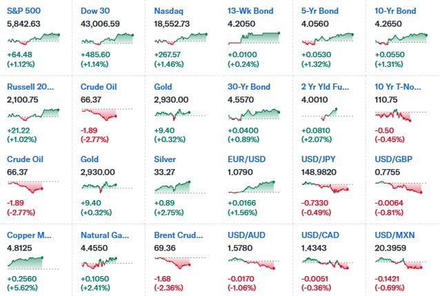 - S&P500 ▲ 5,842.63 (+1.1%)