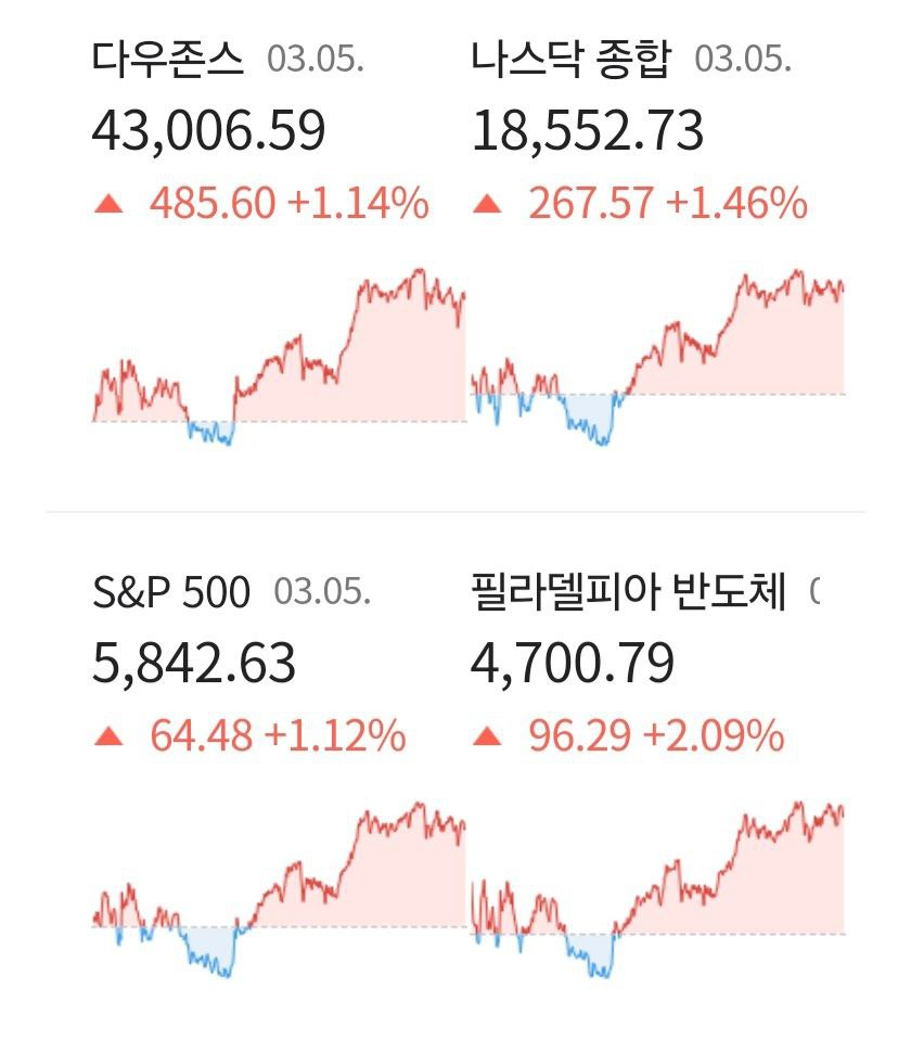 3월 6일 시황. 자동차 관세 유예. 인플레 우려 진정에 상승