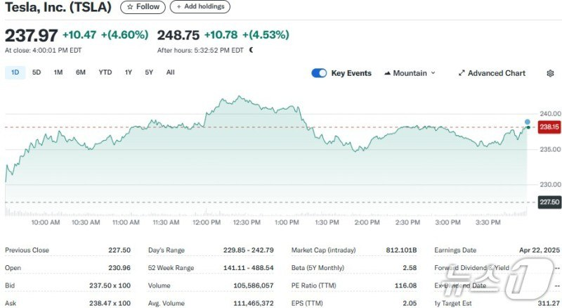 - 테슬라 내년 로보택시 출시 소식에 시간외서 4% 급등