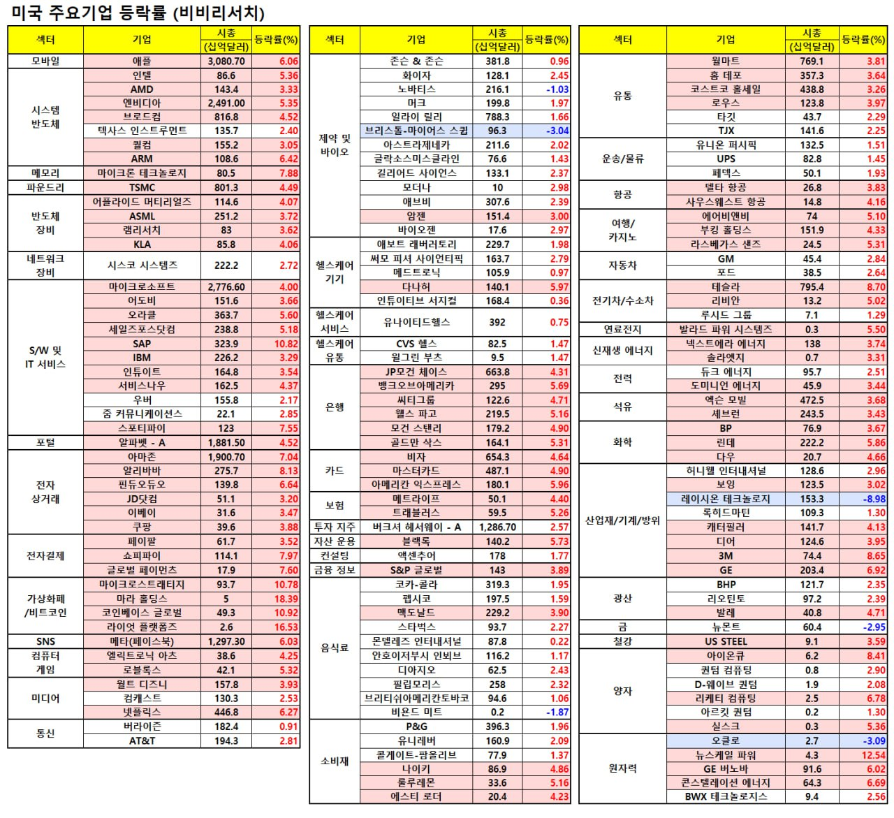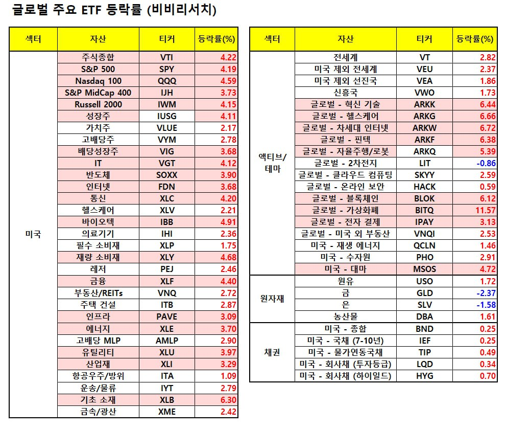 - *특징 종목: 애플, 아마존, 테슬라, 알리바바 등 중국 기업 등이 상승 주도