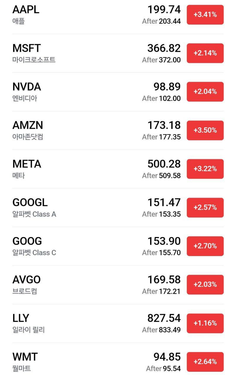 - 애플(+3.41%)은 베센트 재무장관이 미-중 무역 갈등이 지속되지 못할 것이라고 주장하자 상승.