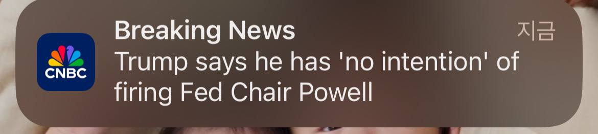 - 📍장 마감 후 연단에 선 트럼프는 돌연 파월의장의 임기가 만료되기 전 그를 해임할 의향이 전혀 없다고 발언했습니다.