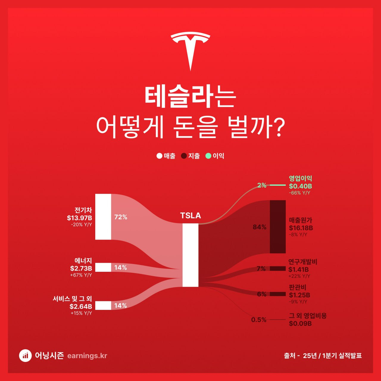 - 테슬라, 1분기 매출 전년대비 9% 감소…‘어닝 미스’
