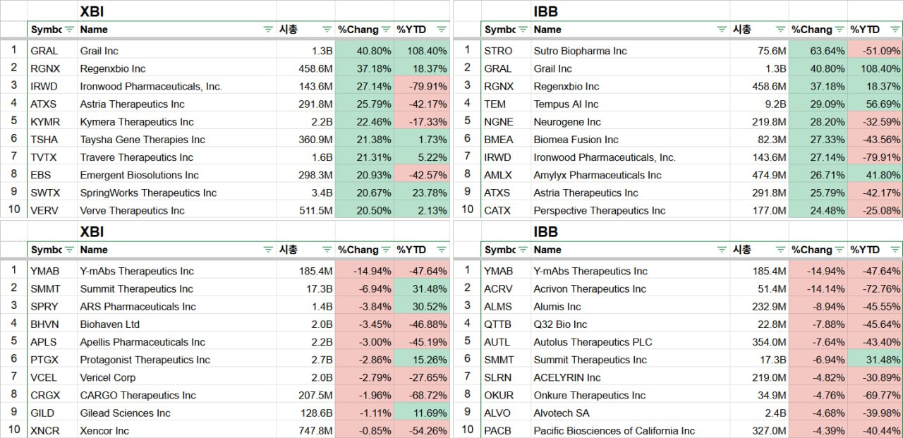 - 써밋 테라퓨틱스(-36.06%)는 파트너사인 Akesso가 머크의 키트루다와 경쟁할 항암제 개발 위해 중국의 승인 소식과 그에 따른 제프리스가 목표주가를 상향 조정 했지만 차익 실현 매물 등으로 큰 폭으로 하락.