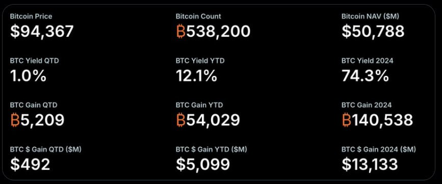 - 올해 지금까지 MSTR btc 운영으로 51억 달러의 BTC 7조 3,378억원 수익이 발생
