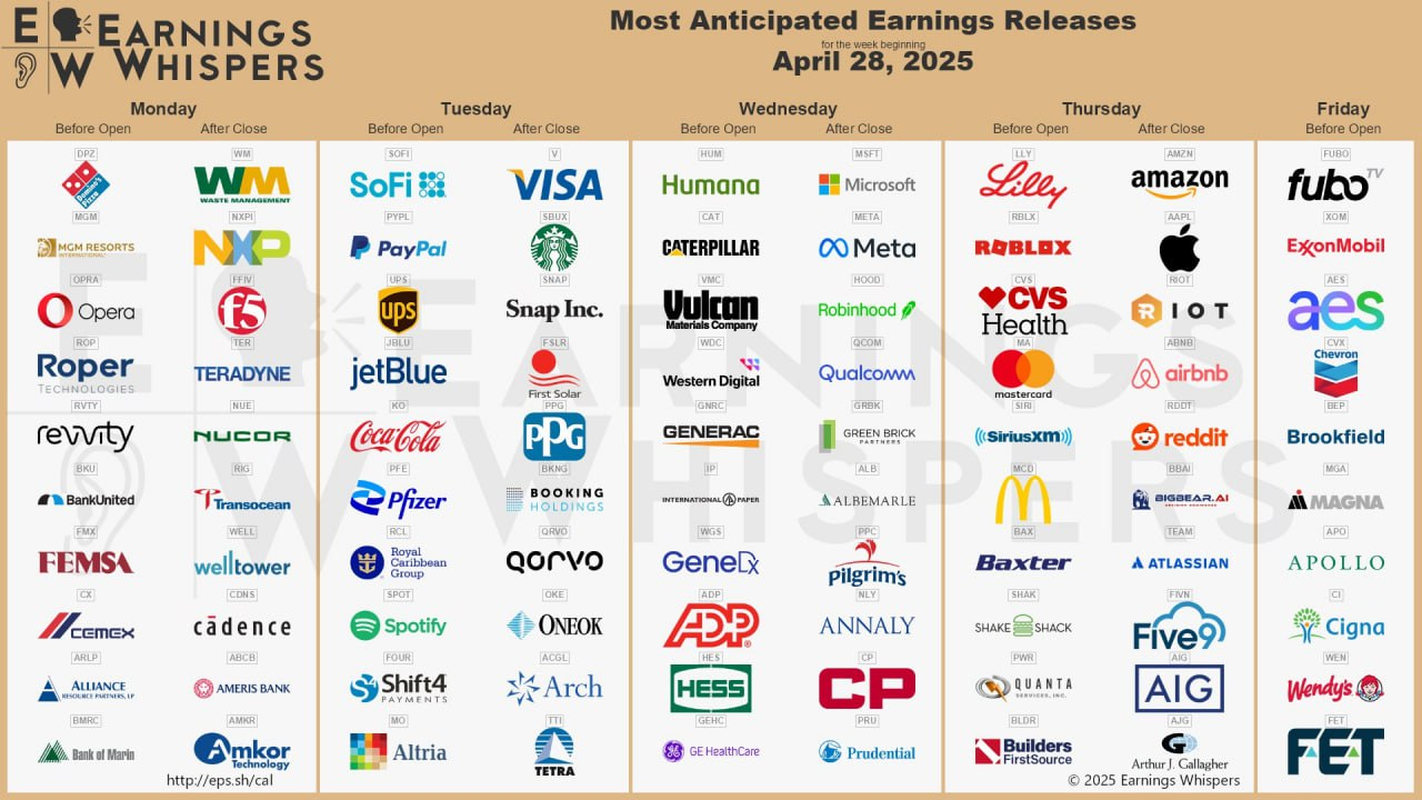 - 또 4월29일에 코카콜라와 크래프트 하인즈, 스타벅스, 5월1일에 맥도날드와 에어비앤비 등 소비자들의 지출 추이를 가늠할 수 있는 기업들의 실적 발표도 줄을 잇는다.